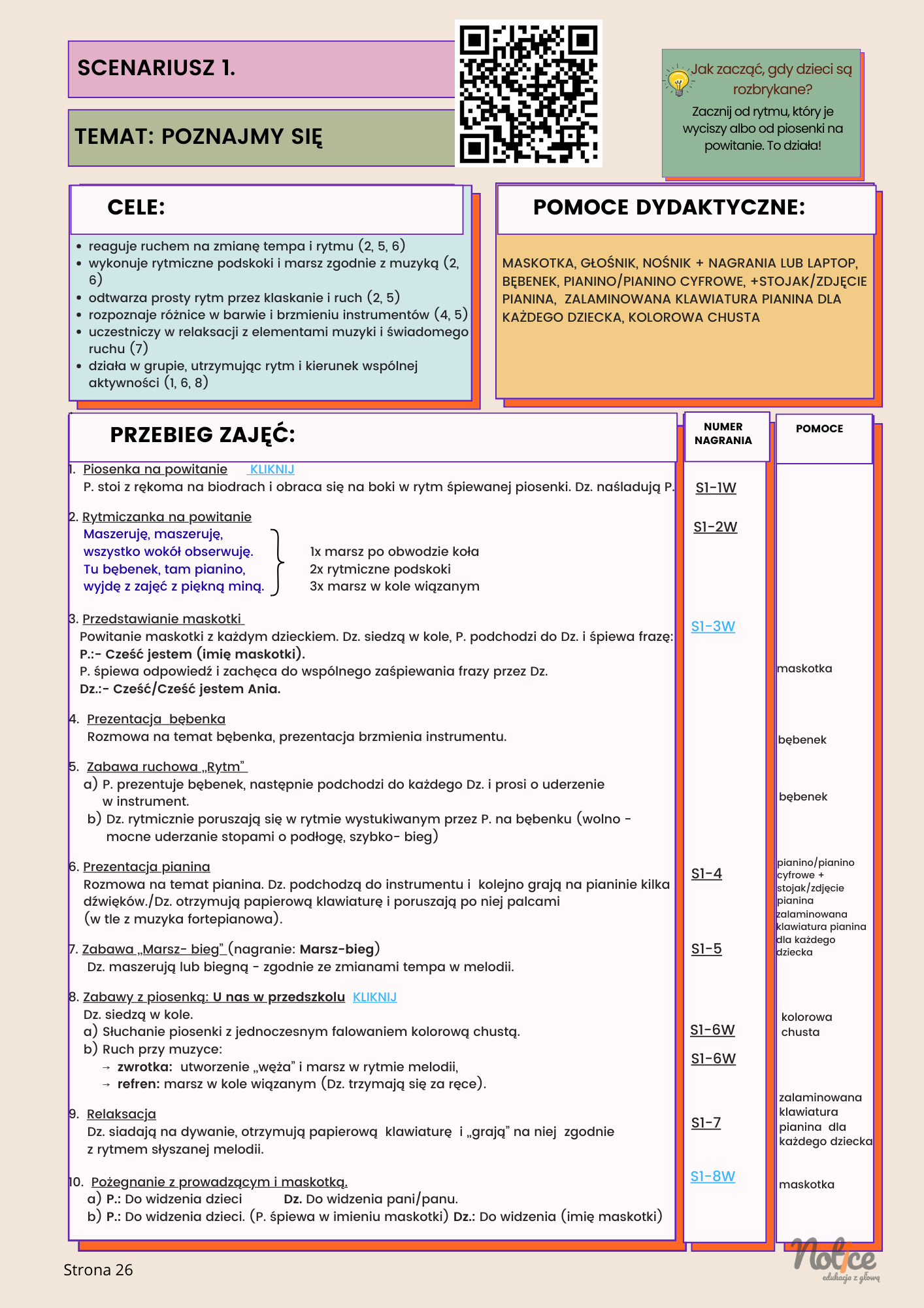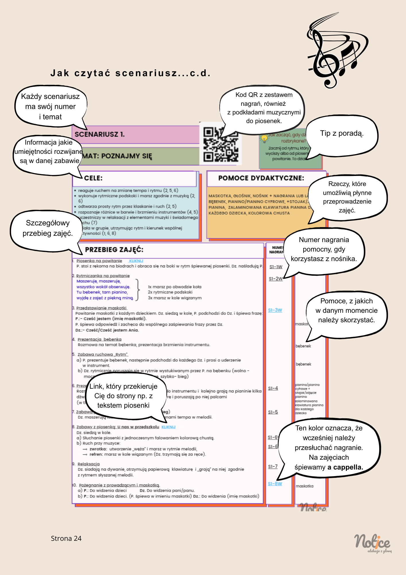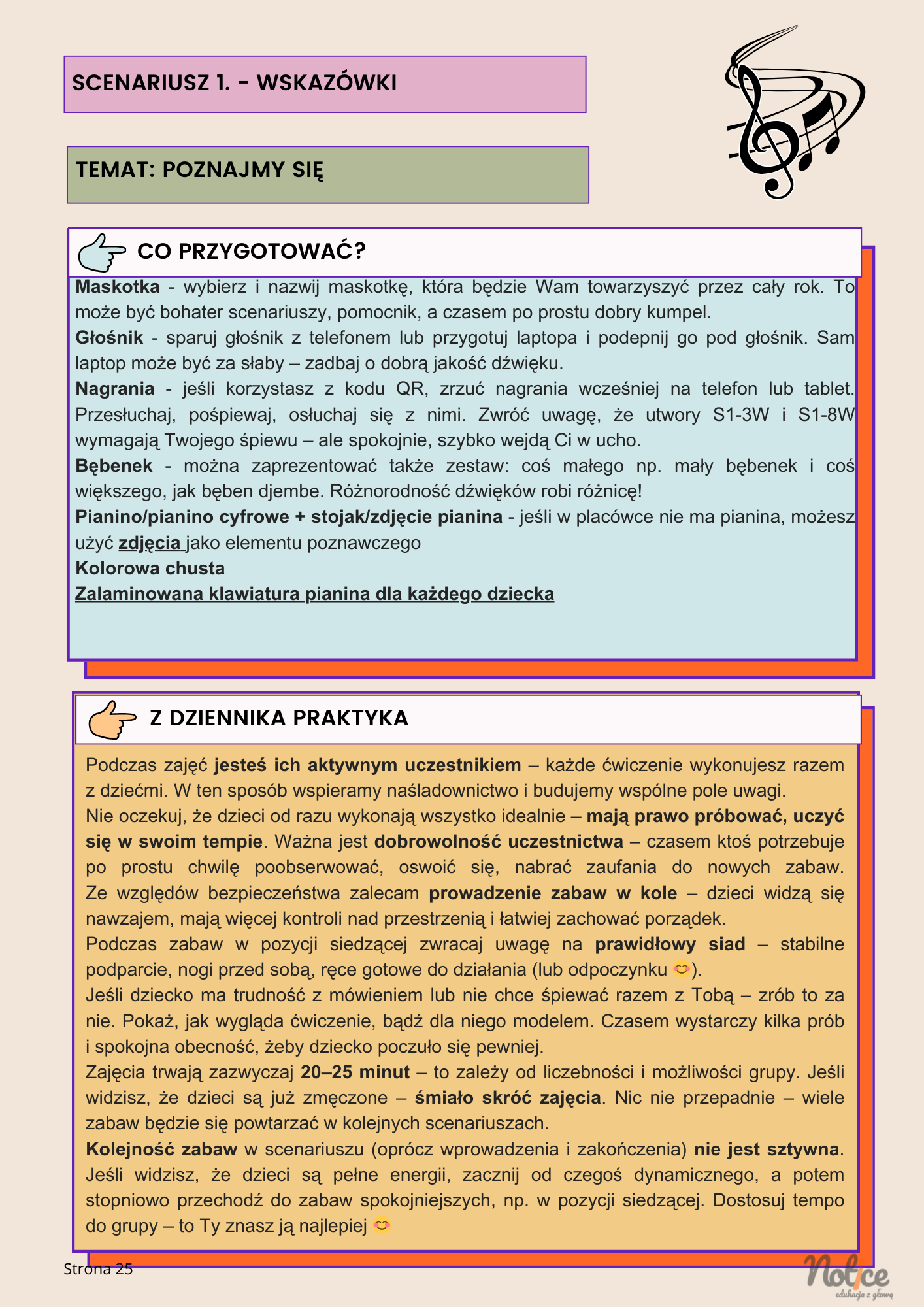 - PDF z muzyką – każdy scenariusz można od razu otworzyć i prowadzić zajęcia